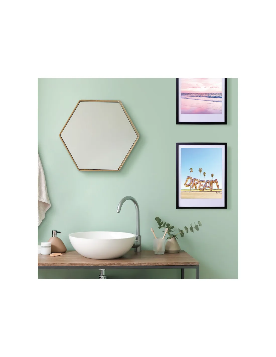 Affiche « Dream Big » – Pickmotion : Une affiche représentant des ballons formant le mot « DREAM » devant une plage et des palmiers.
