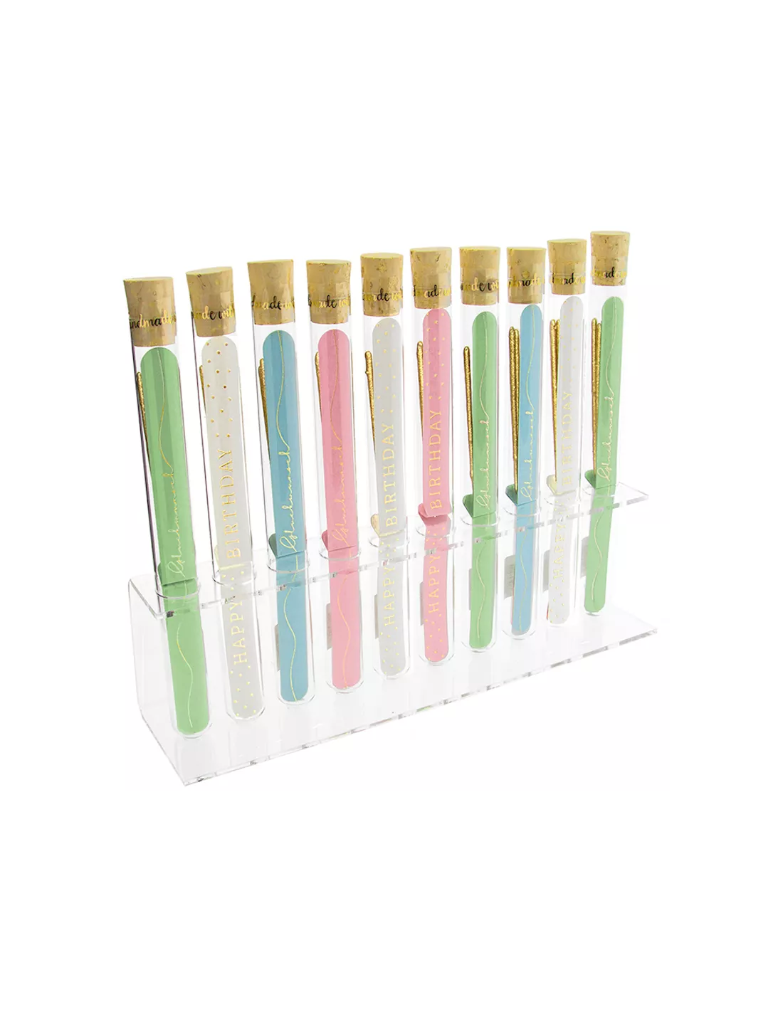 Bougie Tube à essai Make a Wish – Lot de 5 : Ajoutez des étincelles à vos fêtes avec ces bâtonnets scintillante de couleur or ou rose, présenter dans un joli tube à essai.
