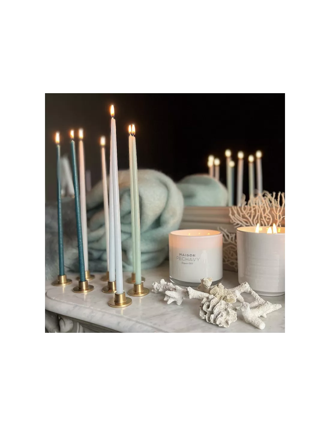Maison Péchavy a eu la bonne idée d’associer des coffrets 20 cierges chandelles fines aux couleurs variées.