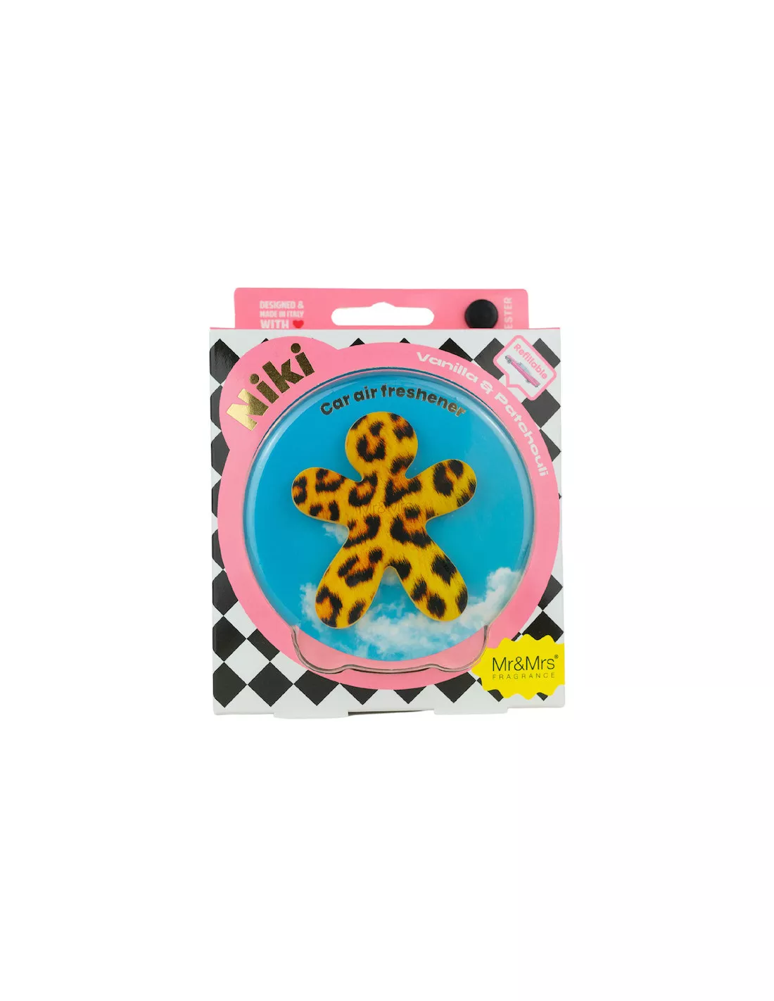 Niki en forme de petit bonhomme lui aussi, viendra parfumer votre voiture en lui apportant une touche Design. Tous ces objets décoratifs sympathiques se déclinent dans des couleurs vives ou plus sobres, différents imprimés, matières, mais aussi en version pailletée ou chromée. La gamme de parfums proposée est elle aussi très large et vous permettra de tous les tester en capsules ou recharges pour voiture.