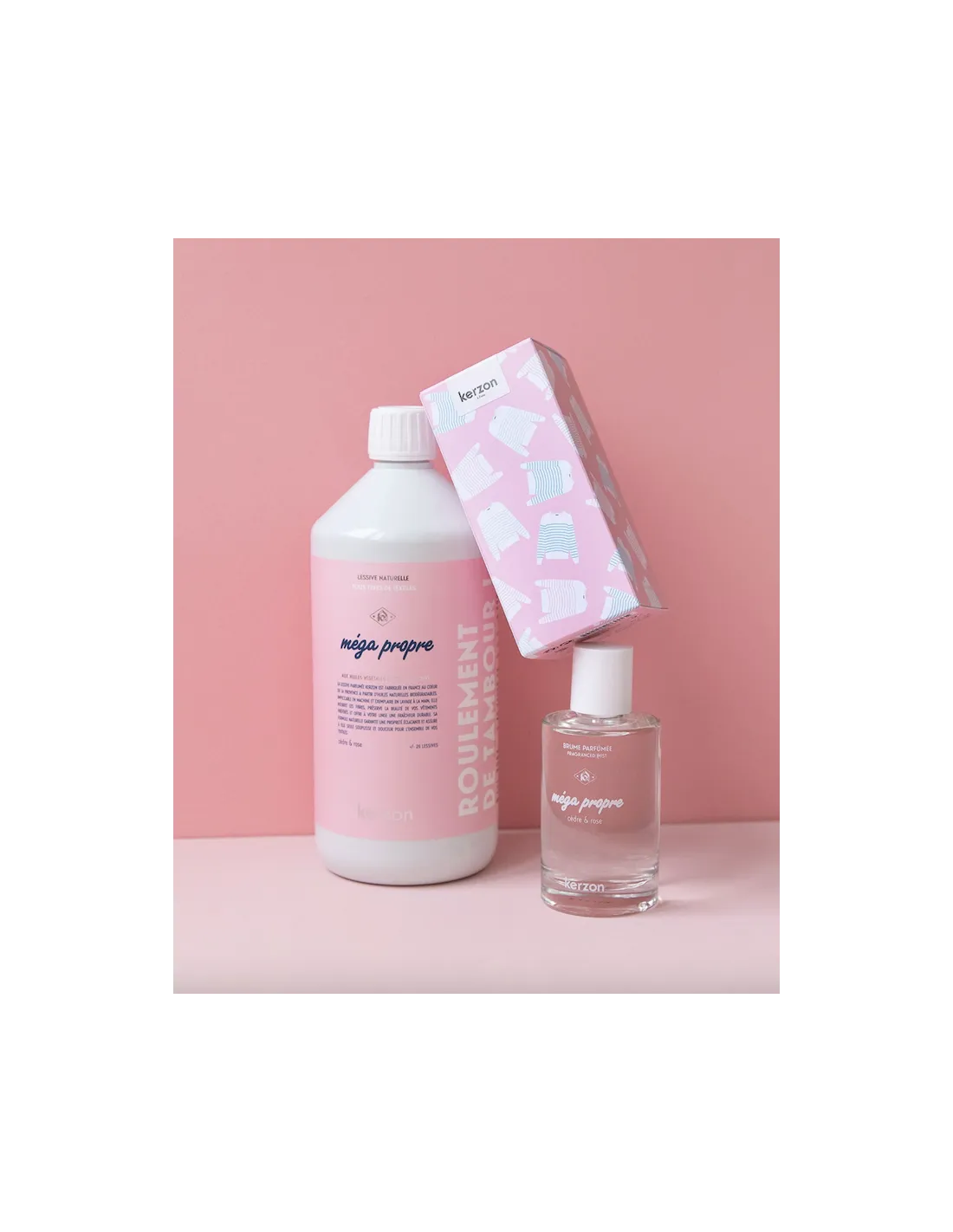 - Brume Parfumée Méga propre – Kerzon : Une odeur fraîche de bois de cèdre et de rose pour parfumer votre intérieur. Brume de maison – 100Ml – Vaporisateur dans une jolie boite cadeau